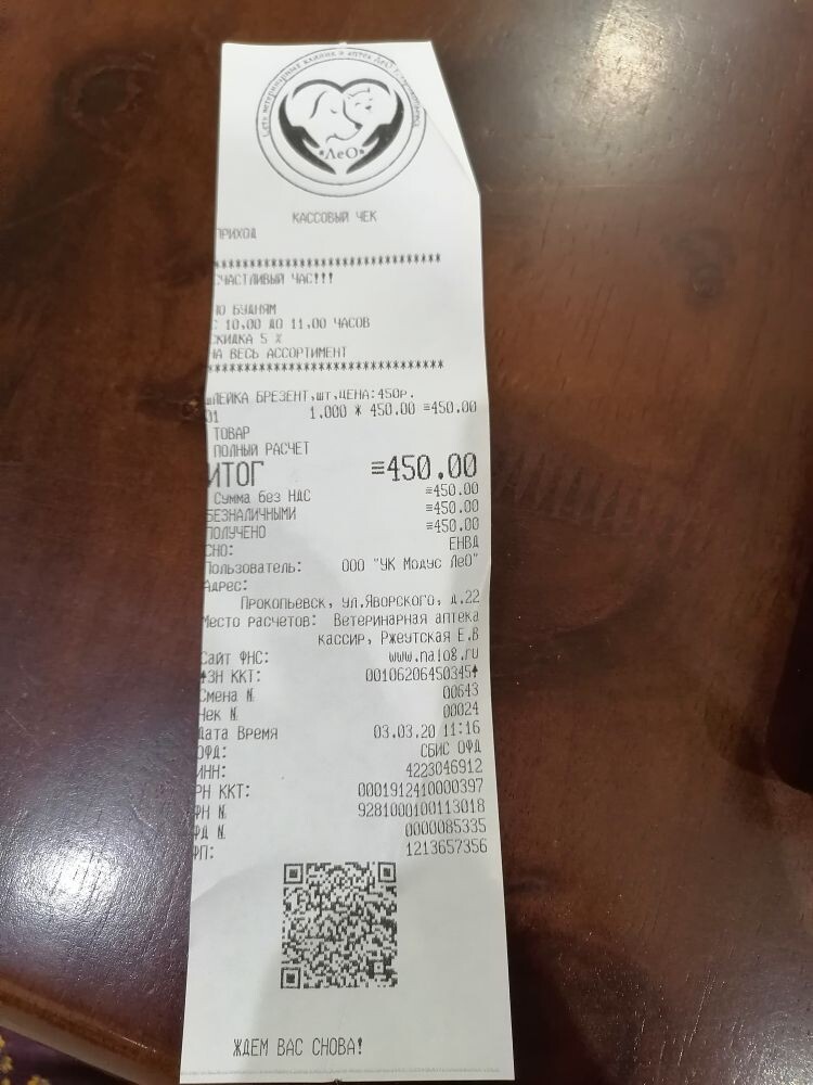 03.03. 150 ветеринарные услуги (в долг, чек от 21.10)