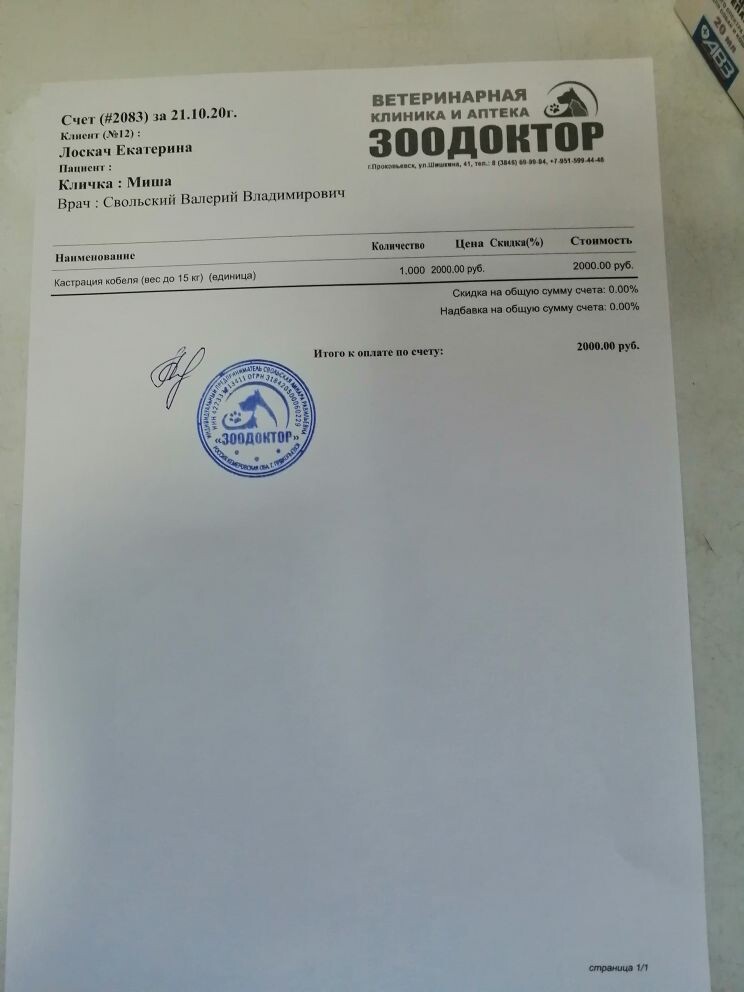 03.03. 2000 рублей кастрация (в долг, чек от 21.10)